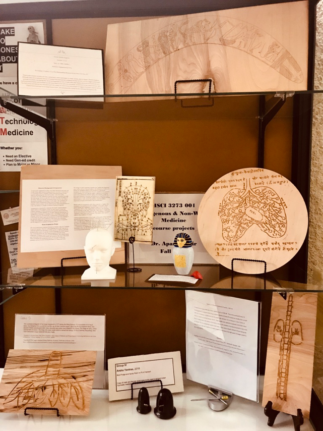 The challenge here was three-fold: first, to decolonize students’ fundamental understanding of medicine, illness and the body in general. Second, I wanted them to connect to the worlds, theories and practices of non-Western and indigenous medicine beyond the limits of the lecture and readings. Third, I wanted to give them opportunities to develop and practice the research and critical thinking skills we want to inculcate in any student who takes a history of medicine class. I utilized a range of group and individual exercises in order to do this, but undoubtedly the most successful assignment was the pop-up exhibit curated and produced by my students, using 3D and laser printing technologies. I will freely admit that I had been struggling to translate these new technologies into meaningful pedagogical interventions in my course design in previous semesters. This time around, I knew that I did not want the assignment to be solely about having students play around with new technologies and I was determined that I wanted the assignment to achieve the following pedagogical goals: